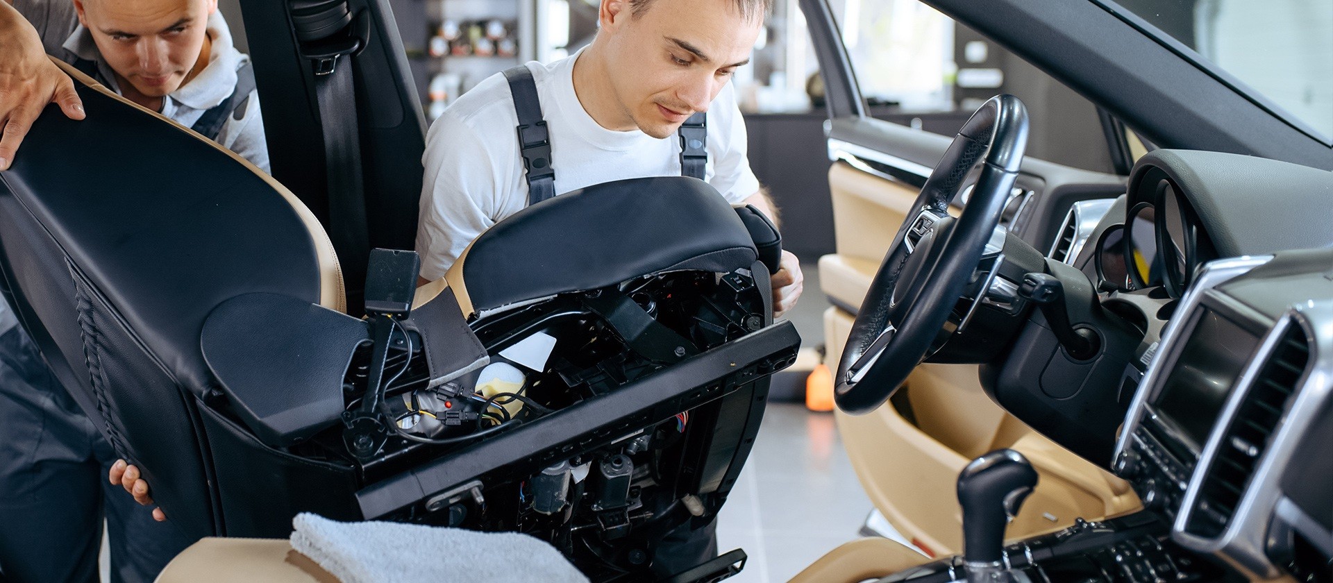 Bei der Reparatur von Innenräumen werden Schäden an Polstern, Armaturenbrettern, Türverkleidungen und anderen Innenraumteilen behoben. Dies kann das Entfernen von Flecken, das Ausbessern von Rissen und Löchern sowie das Ersetzen beschädigter Teile umfassen.